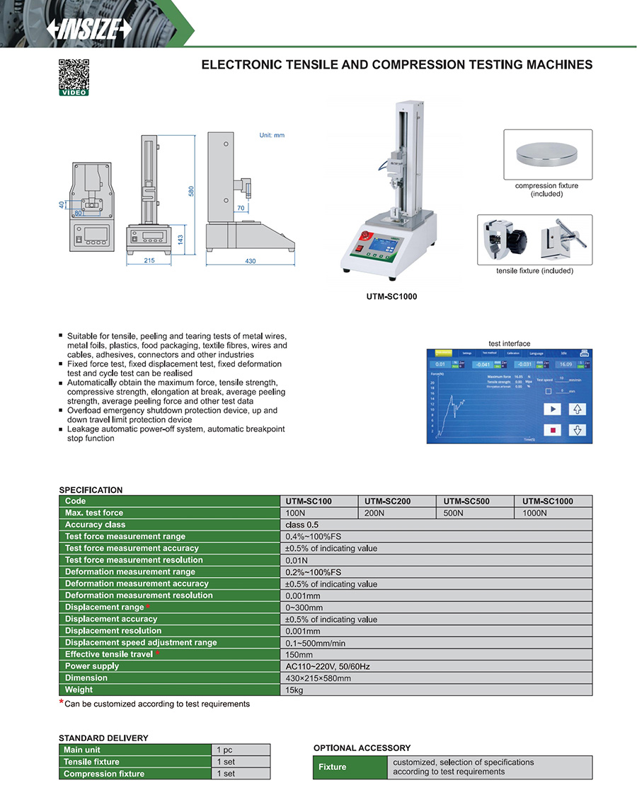 Suitable for tensile, peeling and tearing tests of metal wires, metal foils, plastics, food packaging, textile fibres, wires and cables, adhesives, connectors and other industries