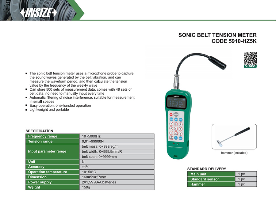 The sonic belt tension meter uses a microphone probe to capture the sound waves generated by the belt vibration, and can measure the waveform period, and then calculate the tension value by the frequency of the weekly wave