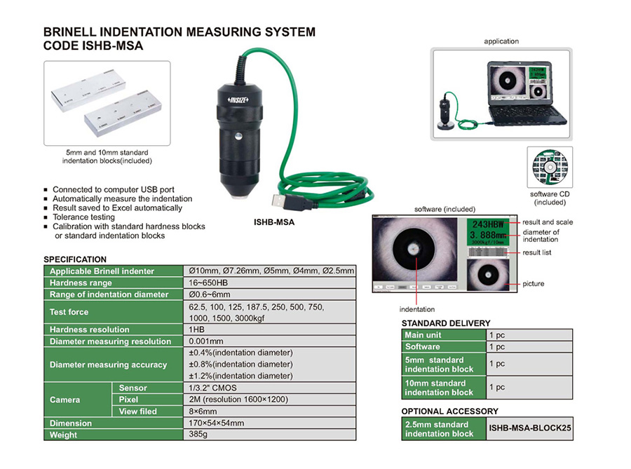 | ISHB-MSA | 16~650HB | 62.5, 100, 125, 187.5, 250, 500, 750, 1000, 1500, 3000kgf |