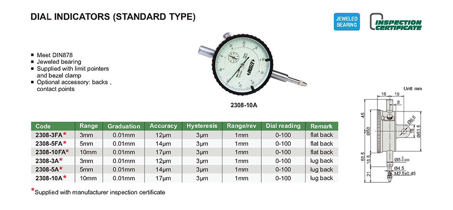 | 2308-10A | 10mm | 17µm | 0.01mm |