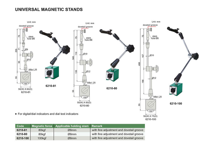 For digital/dial indicators and dial test indicators