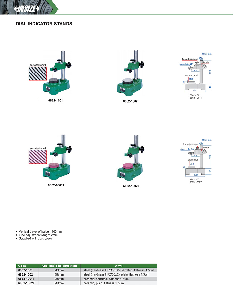Vertical travel of holder: 100mm