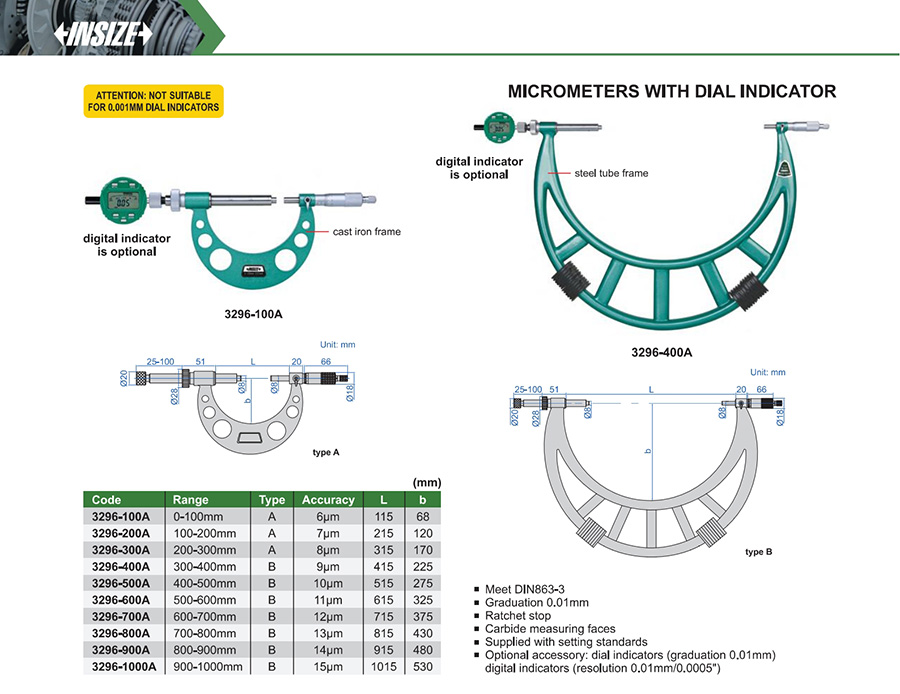 | 3296-1000A | 900-1000mm | 15μm | 0.01mm |
