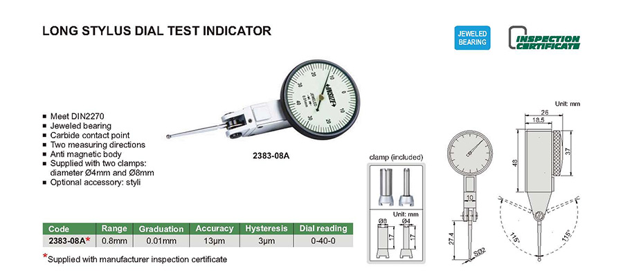 | 2383-08A | 0.8mm | 13µm | 0.01mm |