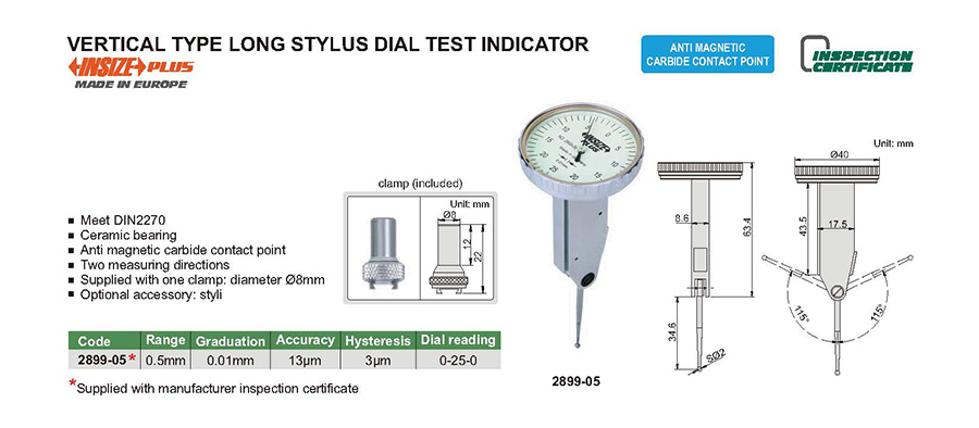 Home / Dimensional Metrology / Measuring Tools / Indicators And Dial Indicator Stands / Dial Test Indicators