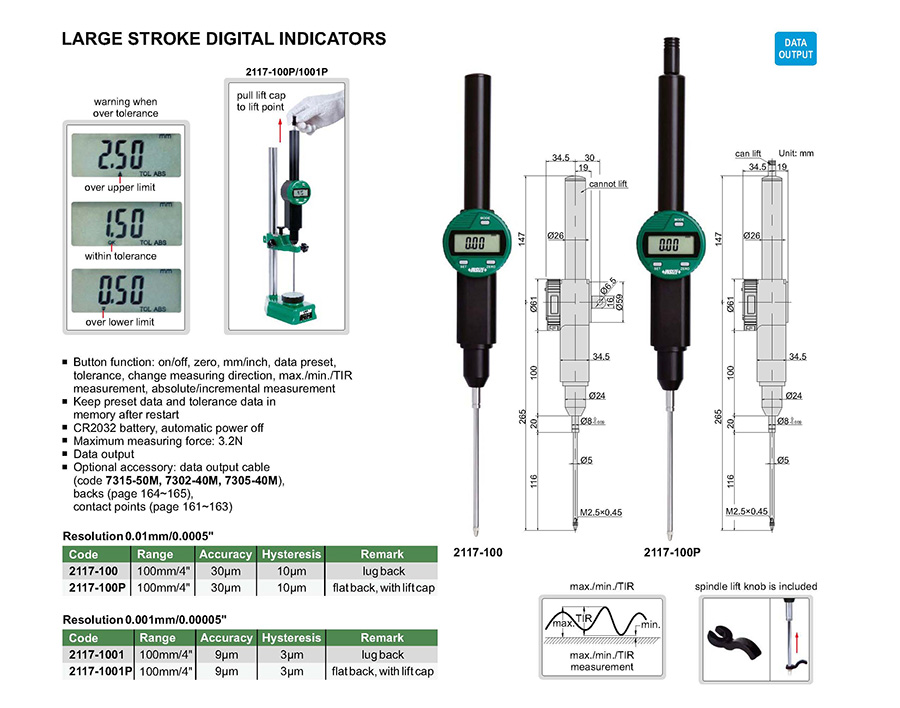 | 2117-1001P | 100mm/4" | 9µm | 0.001mm/0.00005" |