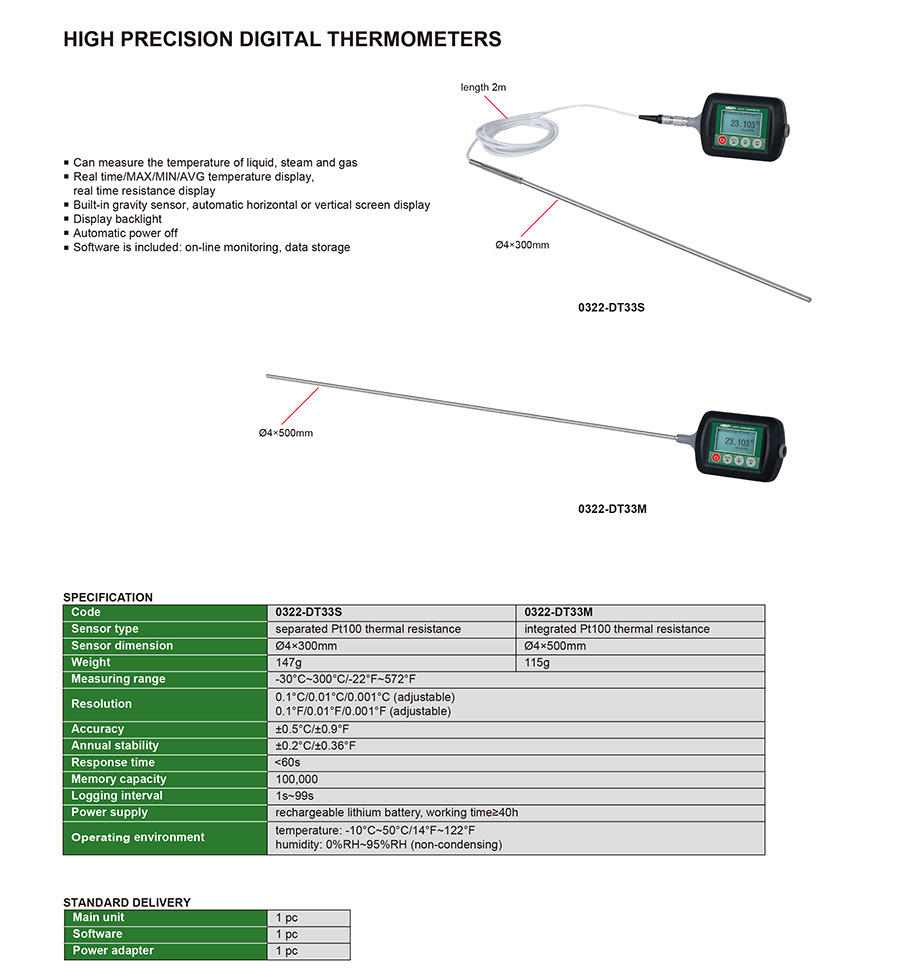 | 0322-DT33M | platinum resistor | ±0.5°C/±0.9°F | 1 | yes | -30°C~300°C/-22°F~572°F |