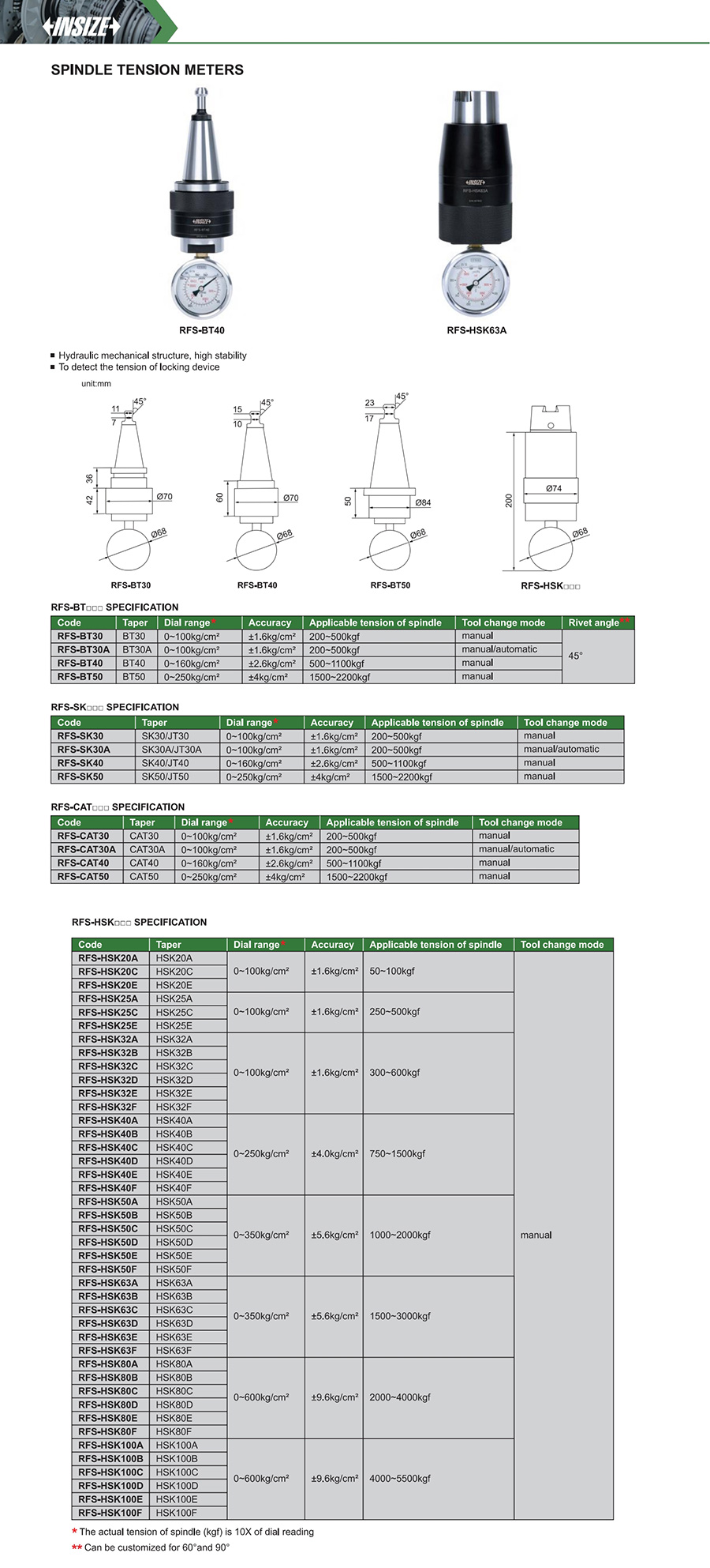 | RFS-HSK32A | spindle tension | 0~100kg/cm² | 300~600kgf |
