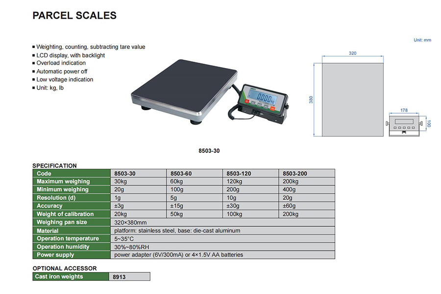| 8503-200 | 20g | 200kg | 380×320mm |