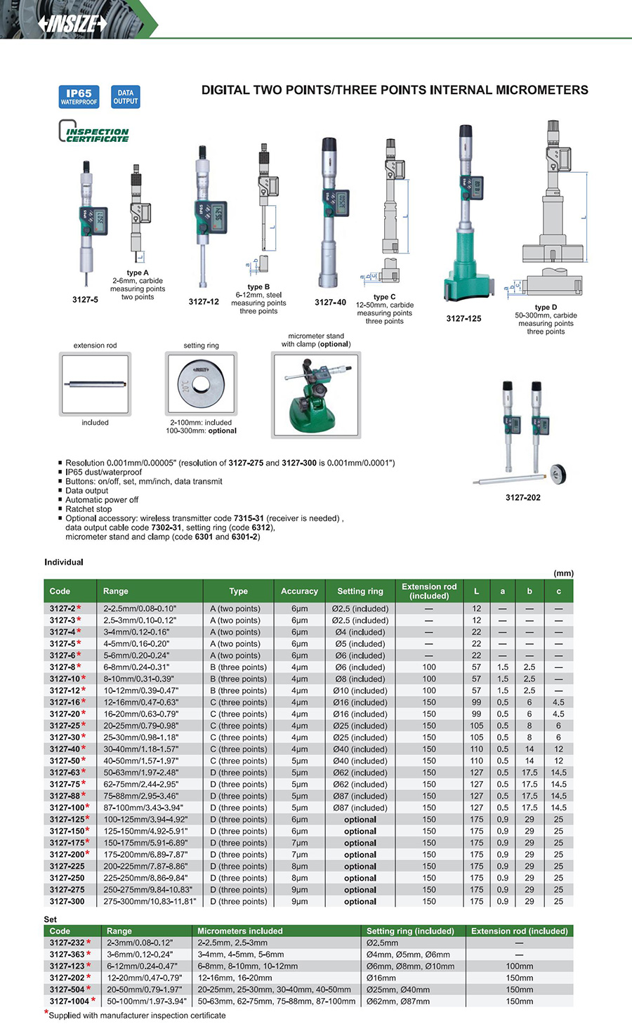 | 3127-175 | 150-175mm/5.91-6.89" | 7μm | 0.001mm/0.00005" |
