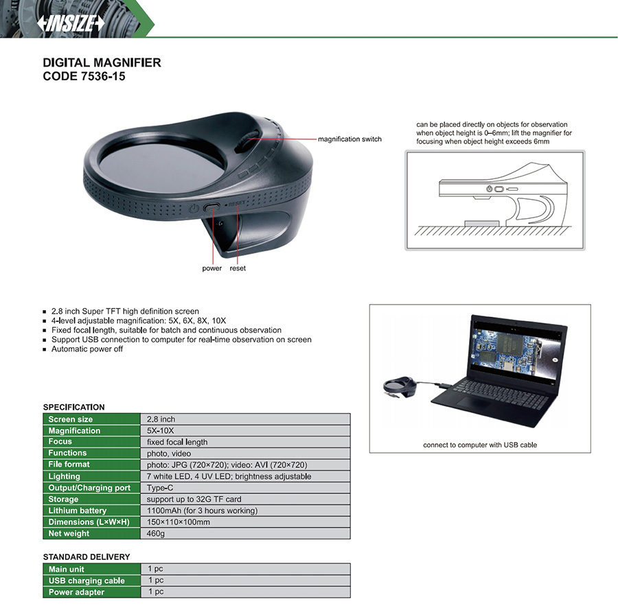 Support USB connection to computer for real-time observation on screen