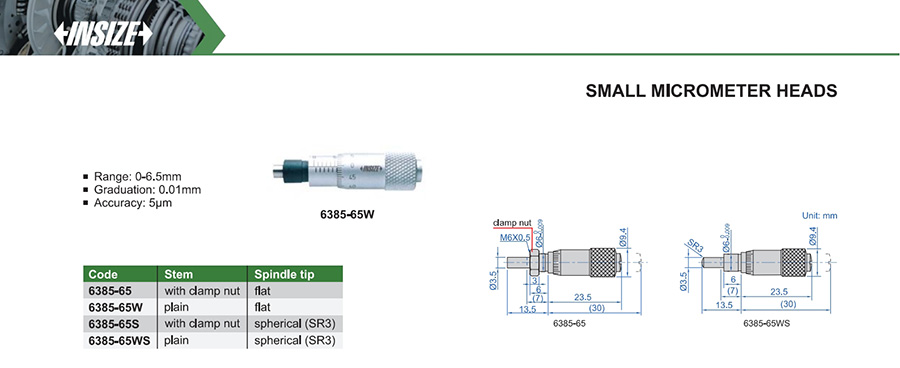 | 6385-65 | 0-6.5mm | 5μm | 0.01mm | with clamp nut | flat |