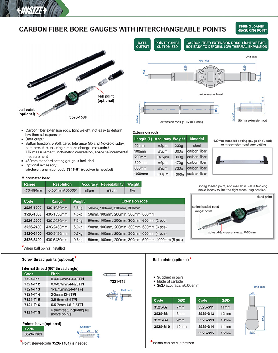 | 3526-1500 | 430-1530mm | ±6µm | ±3µm |