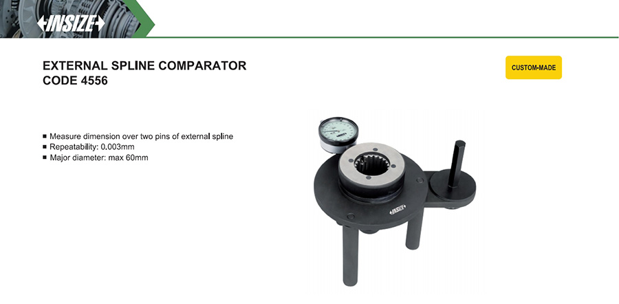 Measure dimension over two pins of external spline