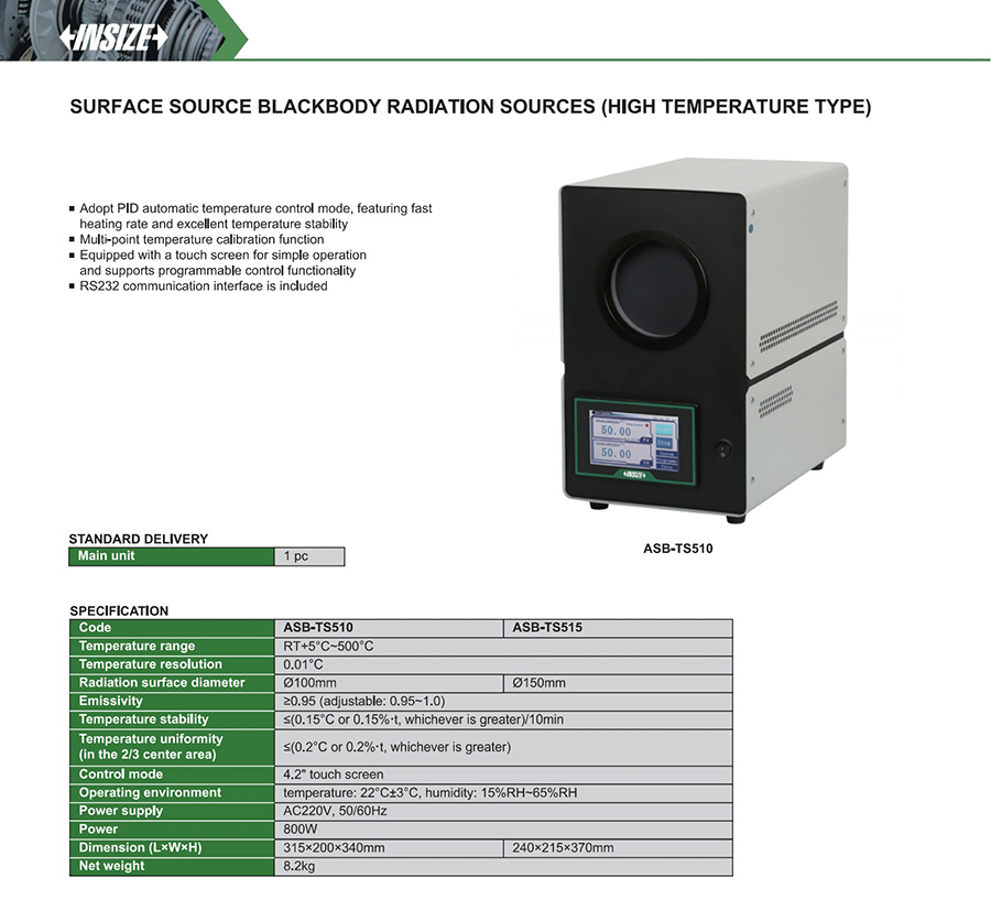 | ASB-TS515 | Ø100mm | ≥0.95 (adjustable: 0.95~1.0) | RT+5°C~500°C |