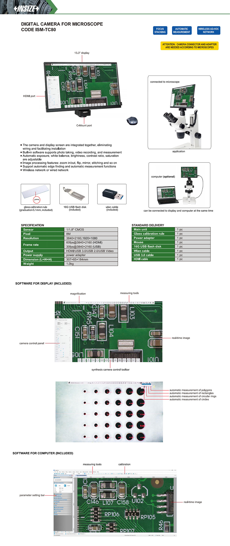 | ISM-TC80 | 1/1.8'' cmos | 3840×2160,1920×1080 | 8M | 60fps@3840×2160 (HDMI), 30fps@3840×2160 (USB) |