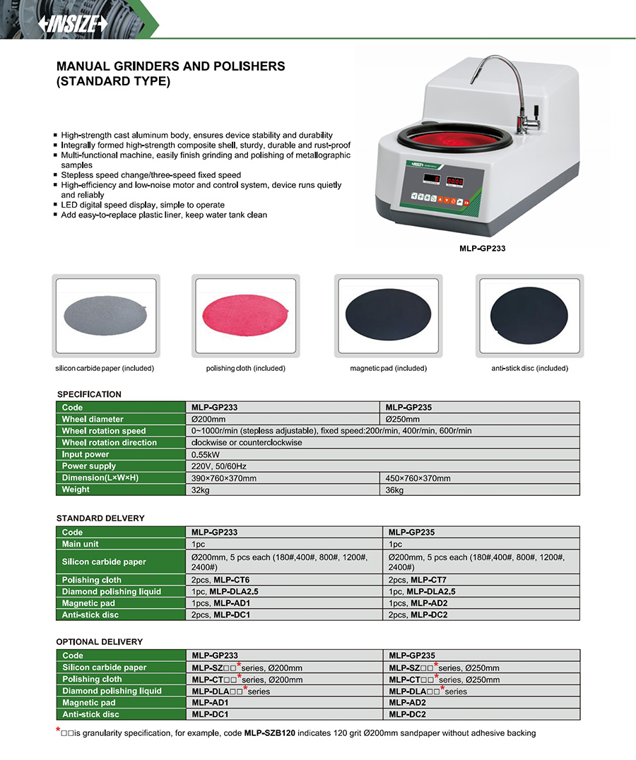 | MLP-GP233 | manual | single | Ø200mm | 0~1000r/min, 200r/min, 400r/min, 600r/min |