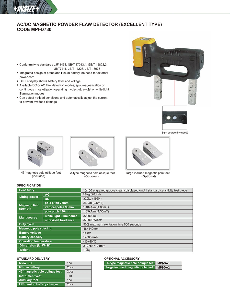 | MPI-D730 | 15/100 engraved groove clearly displayed on A1 standard sensitivity test piece | AC ≥8kg (78.4N), DC ≥20kg (196N) | 48~140mm |