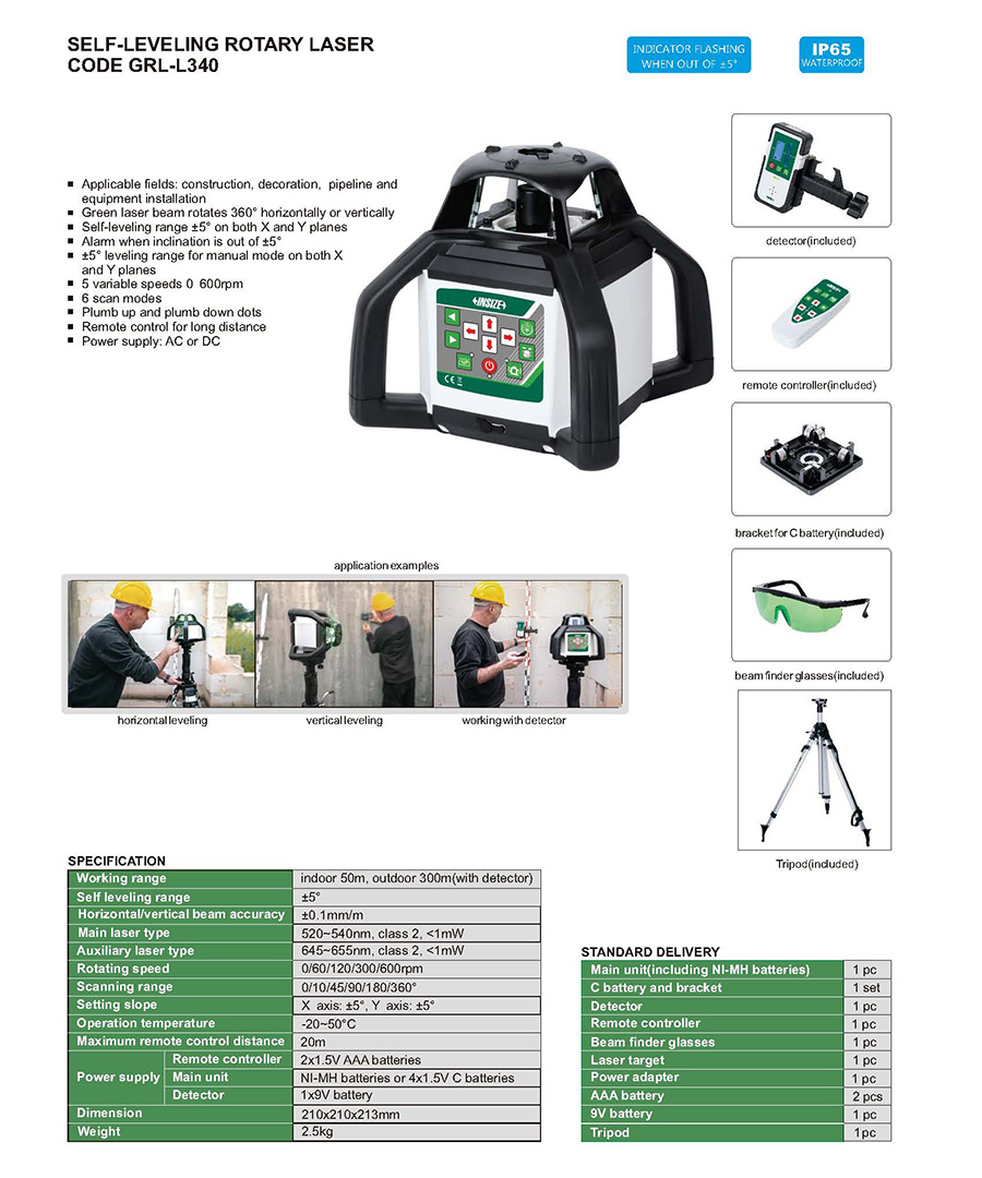 | GRL-L340 | ±0.1mm/m | -20~50°C | indoor 50m, outdoor 300m (with detector) | ±5° |