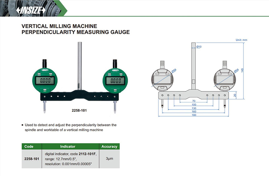 Used to detect and adjust the perpendicularity between the spindle and worktable of a vertical milling machine