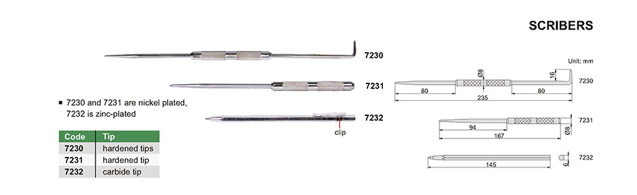 7230 and 7231 are nickel plated, 7232 is zinc-plated