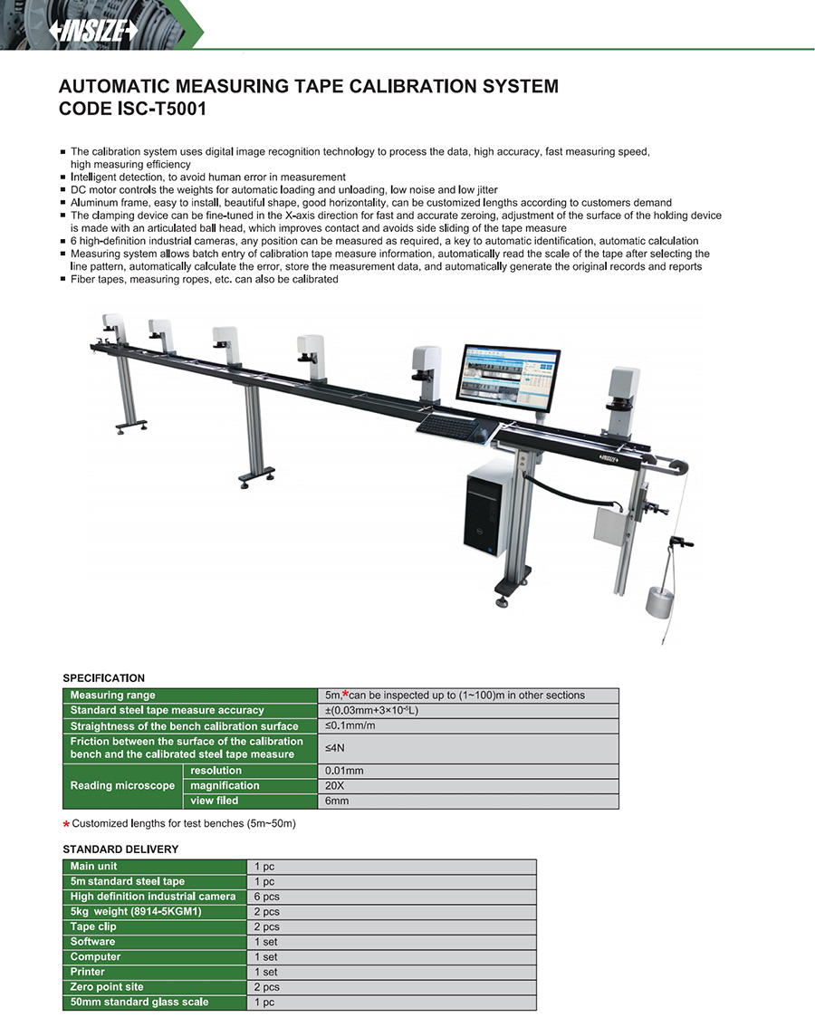 | ISC-T5001 | 5m, Customized lengths for test benches | ≤0.1 mm/m | ±(0.03 mm + 3×10⁻⁵L) |