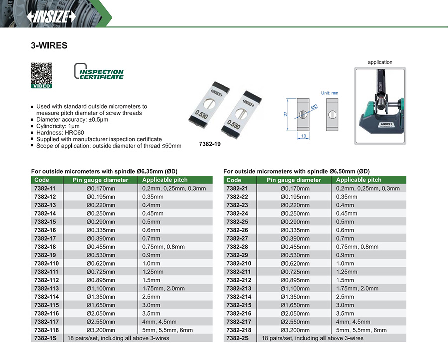 | 7382-11 | 0.2mm, 0.25mm, 0.3mm |