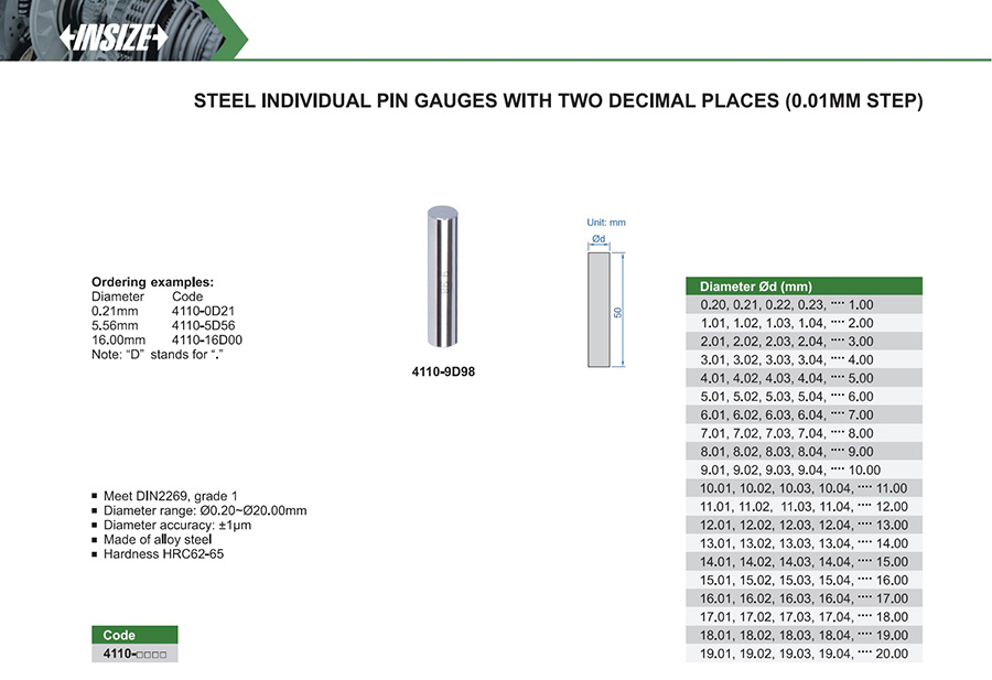 Diameter range: Ø0.20~Ø20.00mm