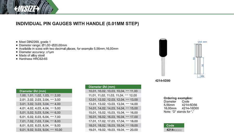 Diameter range: Ø1.00~Ø20.00mm