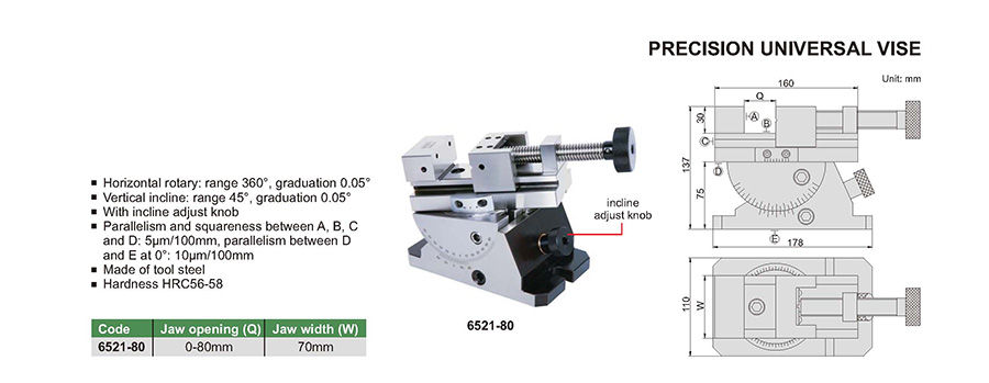 | 6521-80 | 0-80mm | 70mm | 5μm/100mm | 5μm/100mm |