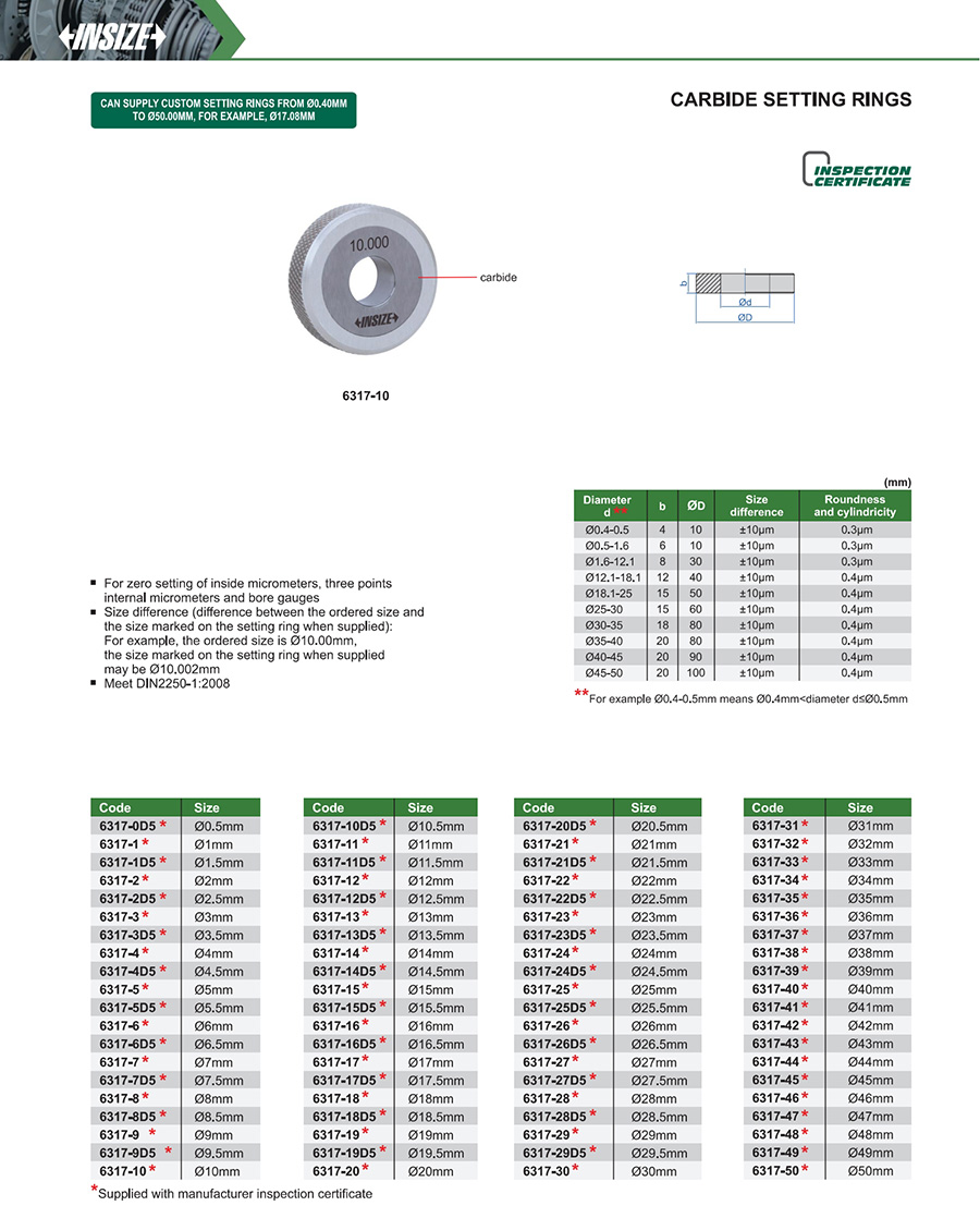 Size difference (difference between the ordered size and the size marked on the setting ring when supplied): For example, the ordered size is Ø10.00mm, the size marked on the setting ring when supplied may be Ø10.002mm