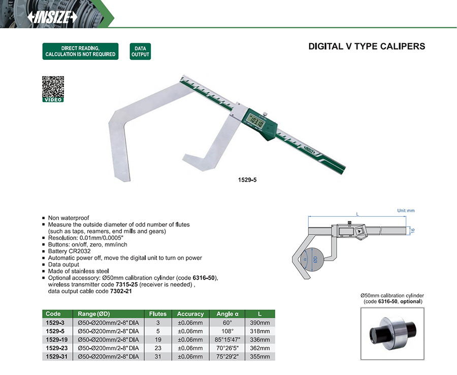 | 1529-5 | Ø50-Ø200mm/2-8" DIA | ±0.06mm | 0.01mm/0.0005" | with data interface |