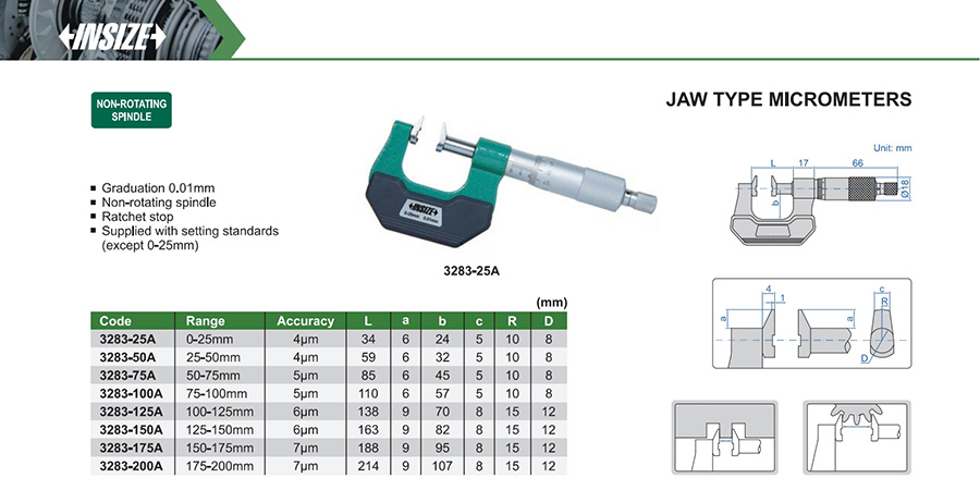 | 3283-125A | 100-125mm | 6μm | 0.01mm |
