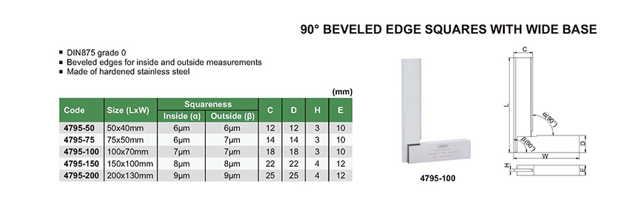 | Code | Size | Squareness Inside (α) | Squareness Outside (β) |