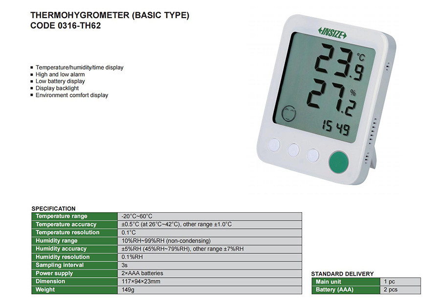 | 0316-TH62 | digital | internal | ±0.5°C (at 26°C~42°C), other range ±1.0°C | 10%RH~99%RH (non-condensing) | ±5%RH (45%RH~79%RH), other range ±7%RH | yes | -20°C~60°C |