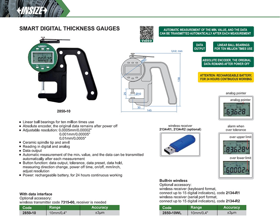 | 2850-10 | 10mm/0.4" | ±3µm | 0.0005mm/0.00002" |