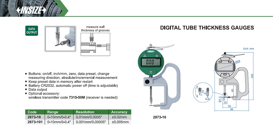 | 2873-10 | 0-10mm/0-0.4" | ±0.02mm | 0.01mm/0.0005" |