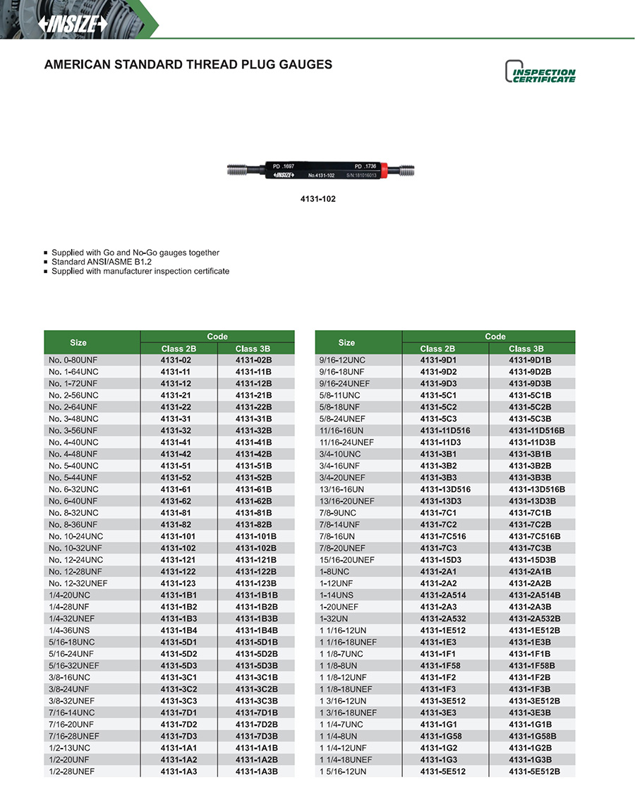 Supplied with Go and No-Go gauges together