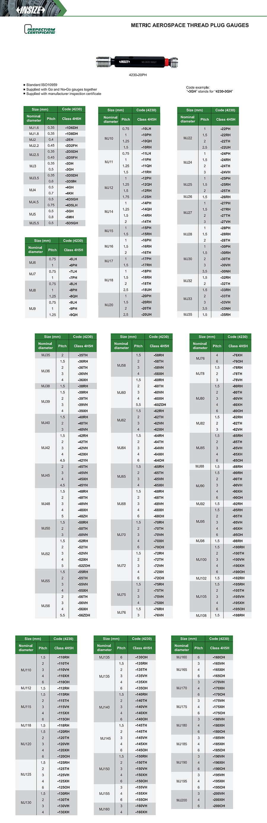 Supplied with Go and No-Go gauges together