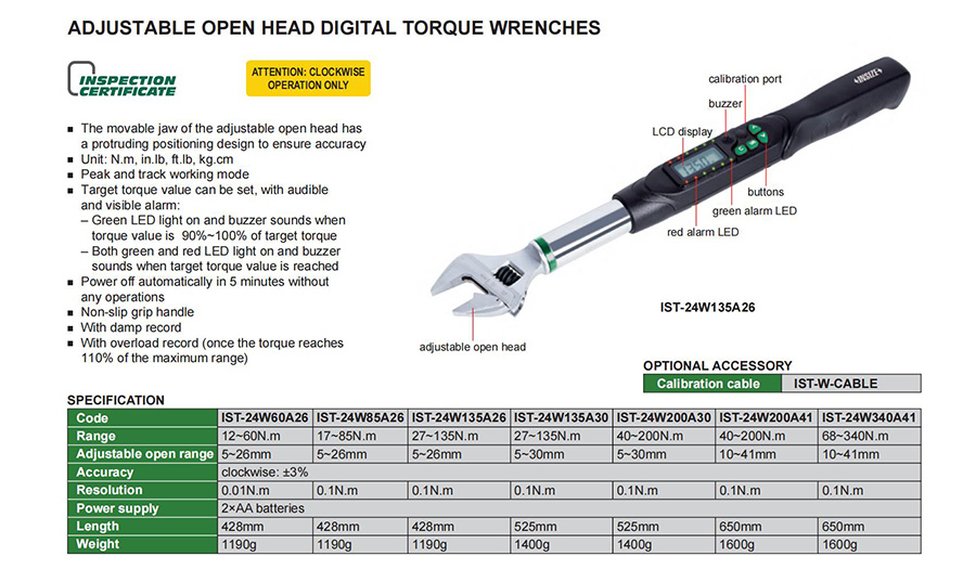 | IST-24W135A30 | digital | 27~135N.m | no transmission | digital display | adjustable open head |