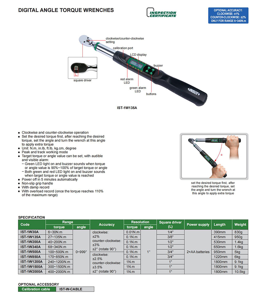 | IST-1W135A | digital | 27~135N.m | no transmission | digital display | fixed ratchet head |