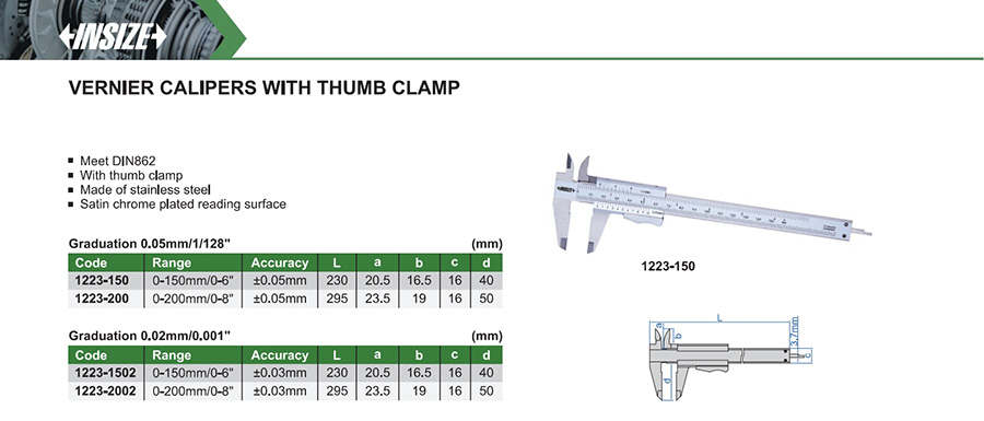 | 1223-150 | 0-150mm/0-6" | ±0.05mm | 0.05mm/1/128" |