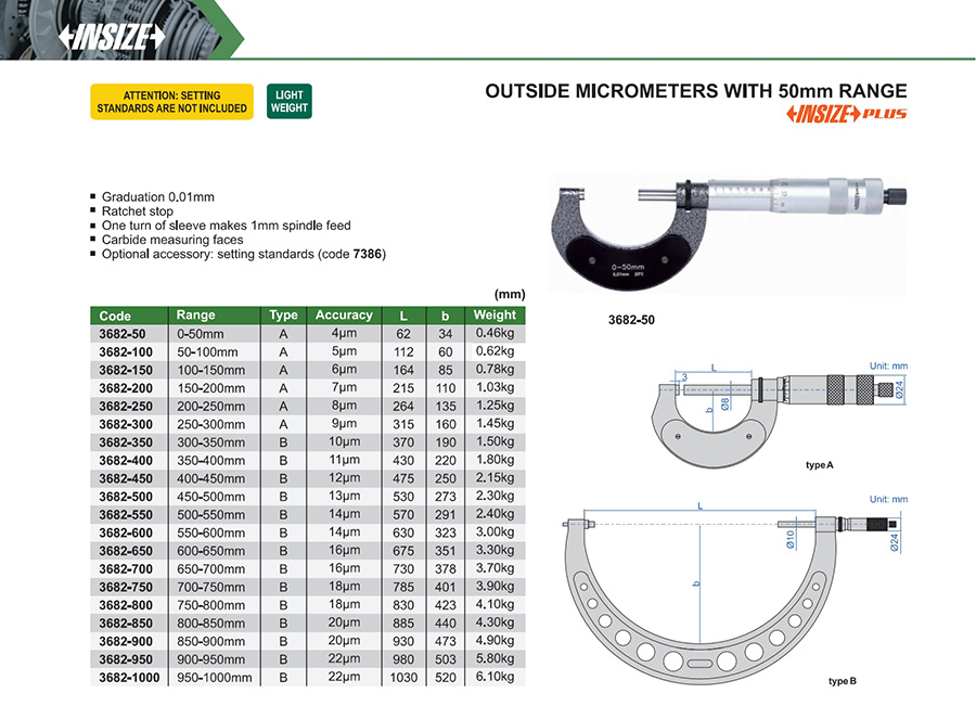 | 3682-900 | 850-900mm | 20μm | 0.01mm |